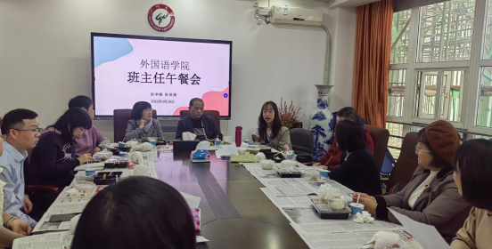 333会议室举行,学院党委书记李暖均、院长王晋军、党委副书记许多恬出席午餐会,2019级各班班主任、2019级辅导员参加会议。本次会议由许多恬副书记主持。