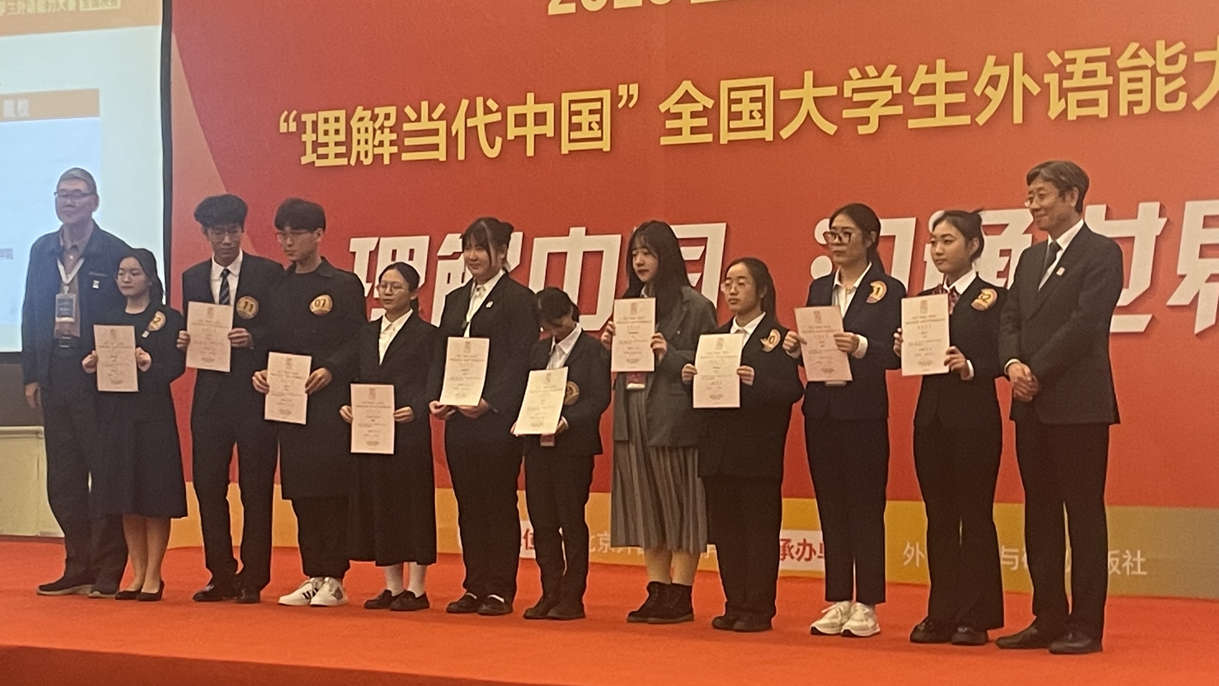 近日,2023年“外研社·国才杯”“理解当代中国”全国大学生外语能力大赛圆满落幕。我校共选派6名省金奖得主代表广东省赴北京参加全国总决赛,并斩获3银3铜的佳绩。其中,来自High漫画 2021级英语(师范)专业的肖琦获得阅读比赛国家银奖2021级英语专业的资钧廷获得口译比赛国家银奖2021级日语专业的林家和获得日语综合赛国家银奖;2021级英语(师范)专业的王宇成、2021级英语专业的资钧廷获得写作比赛国家铜奖;2020级日语专业的梁芷欣获得日语综合赛国家铜奖。此前,我校代表队2023年“外研社·国才杯”“理解当代中国”全国大学生外语能力大赛广东省省赛英语类五项赛事(写作、阅读、演讲、口译、笔译)中共获得金银铜奖16项,位列全省第一,其中金牌数位列全省第四;在广东省省赛多语种日语组、法语组赛事中,共获得金奖2、银奖1项