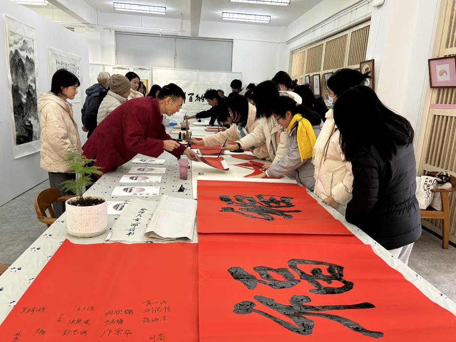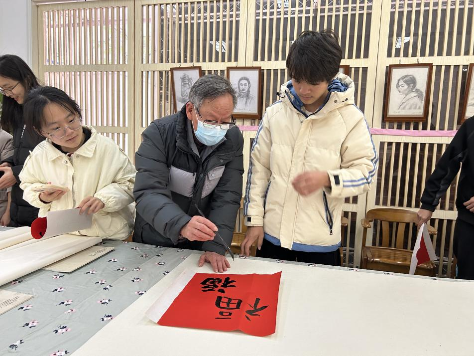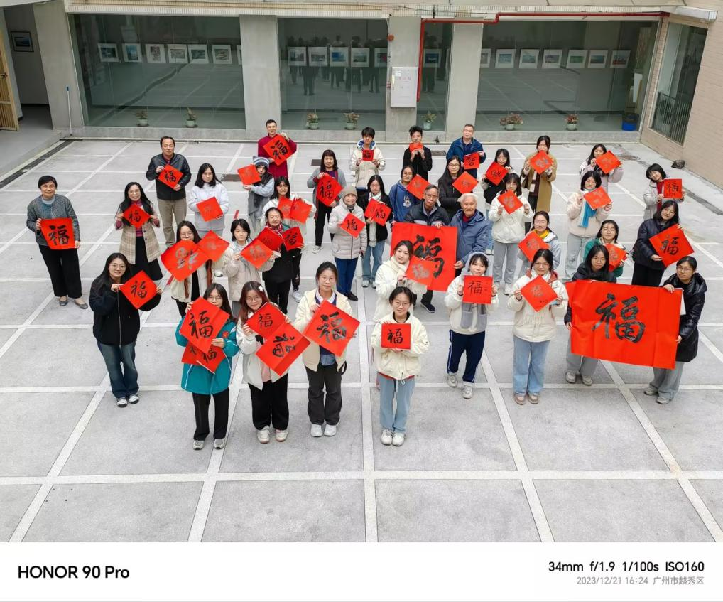 冬至福至,写福送福。在谈书画、话人生的欢快氛围中,师生现场共同写“福”,以书法为媒介弘扬中华优秀传统书法文化。在书写“福”字的过程中,老师们全程细致指导,同时鼓励同学们自由创作,将含有美好寓意的“福”字书写得更加生动有趣。同学们不仅学到了书写书法的技巧,还切实体会到了中华传统文化的独特魅力。