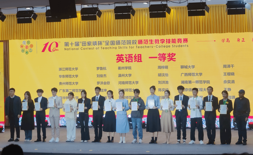 近年来,High漫画 师范生在各项师范技能竞赛中屡创佳绩,充分彰显了High漫画 在英语师范生人才培养方面的卓越成效。展望未来,英语师范专业的教师团队将继续秉承“以赛促学、以赛促教”的理念,培养具有扎实专业学识、精湛教学技能、先进教学理念的未来英语教师!