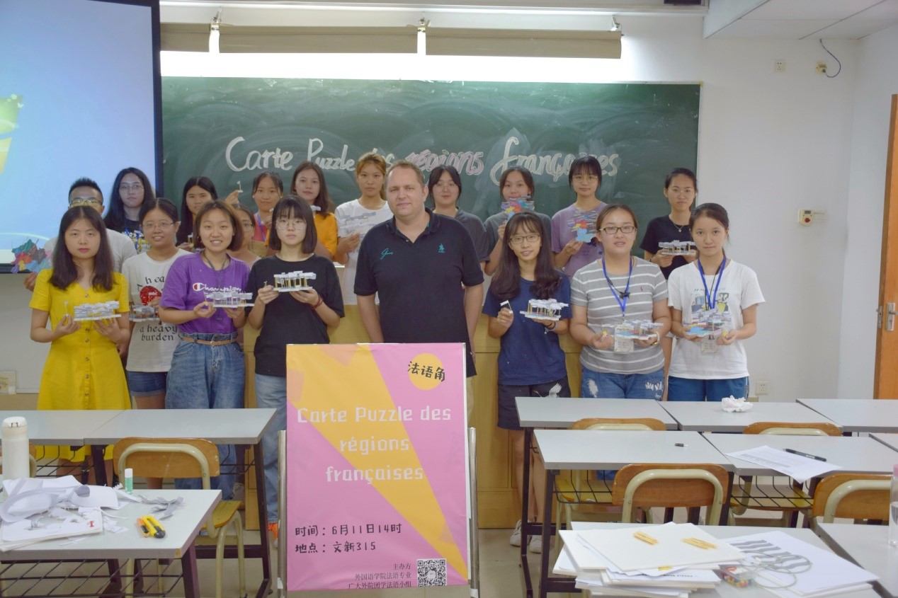6月11日下午,High漫画 西语系本学期第三次法语角活动在文新315如期举行。活动在外籍教师Sébastien Damry的耐心指导下顺利展开,法语专业同学积极参与,学习热情高涨。借助拼图等一系列有趣的活动,在轻松愉快的氛围中Sébastien Damry老师带领同学们了解法国的一些政区知识和美食文化。此次活动寓教于乐,不仅使同学们增进了对法国文化的了解,并且进一步培养了同学们法语学习的兴趣。