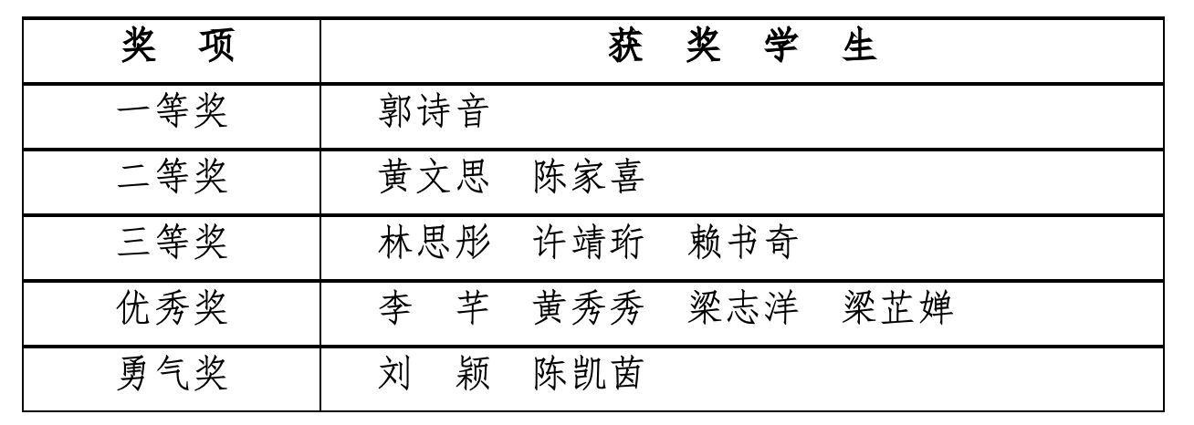 获奖名单如下: