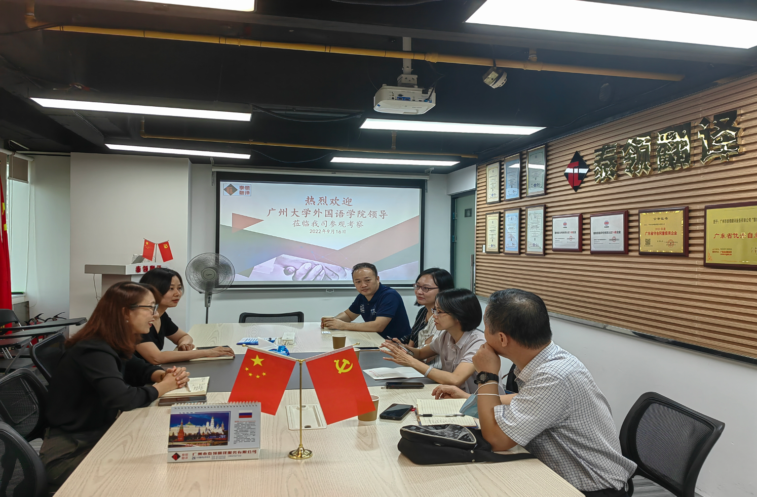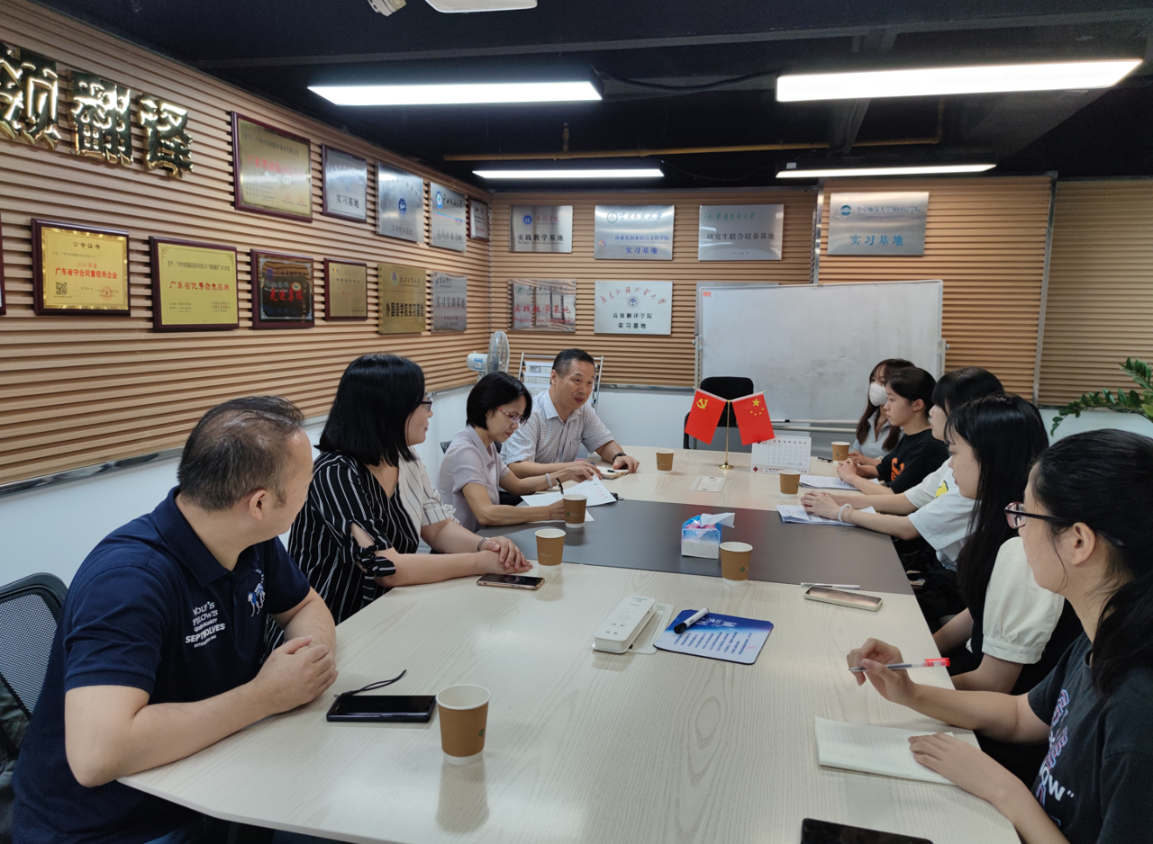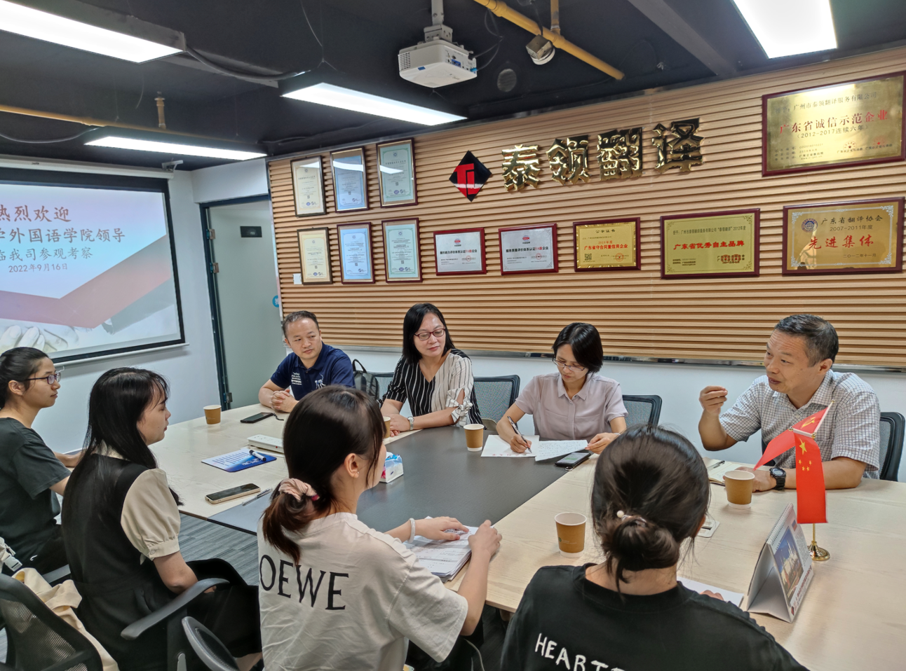 实习实践基地广州市越秀区泰领翻译服务有限公司(以下简称“泰领”)进行实习教学检查工作,并与泰领公司总经理程果女士、人力资源部英语负责人唐雅丹女士就院企合作、人才培养以及学生实习安排等开展座谈会。