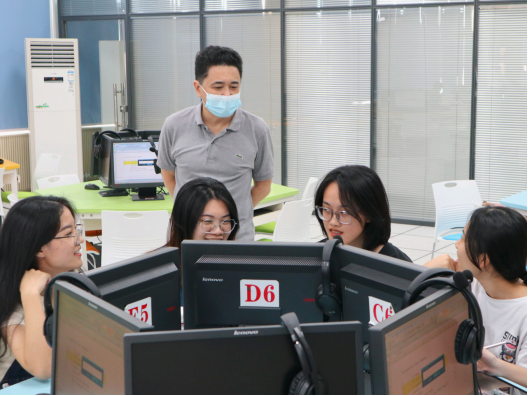 外教Frédéric老师带领大三的同学学习了如何将一首中文歌曲翻译成法文并将翻译出的歌曲演唱出来。同学们在给定的时间内进行翻译并练习,最终每组通过演唱各自翻译的歌曲的的方式展现自己的成果。