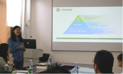 党团工作经验。在党建方面,外语学院从先锋模范、结对共建、创新机制、丰富载体四个方面共同发力;三四四指的是三全育人体系、“四化四提升”组织育人新模式、四位一体学生社区思政育人体系。张建副书记还从党建引领、文化浸润、实践淬炼、素质强能四个方面详细介绍了外语学院学生社区情况。