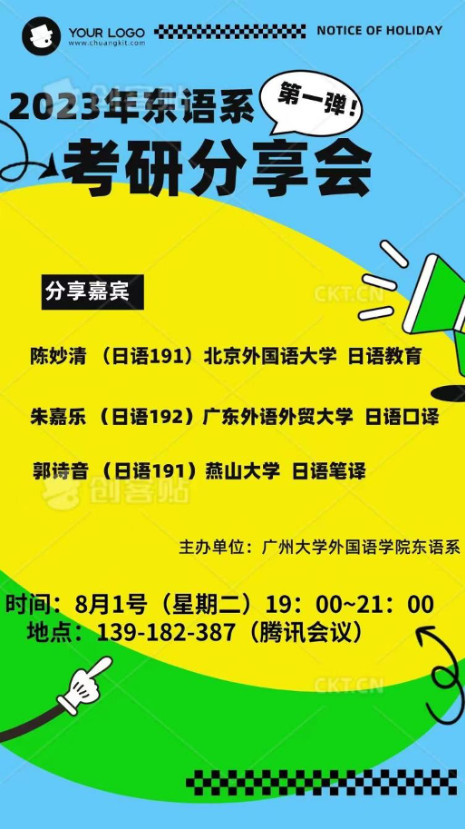 东语系在腾讯会议平台上顺利举办了2023年第一次日语专业考研经验分享会。本次活动邀请的分享人为19级学生陈妙清、朱嘉乐、郭诗音,三位学生分别考取了北京外国语大学、广东外语外贸大学及燕山大学日语专业硕士研究生。活动由21级学生费晓娟主持,东语系全体教师及20、21、22级学生参加了分享会。