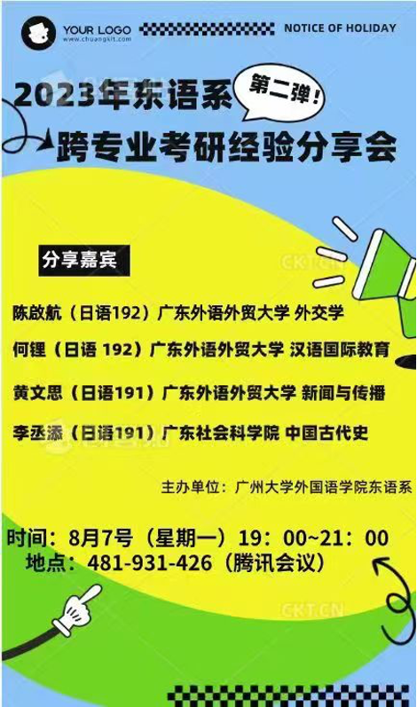 东语系在腾讯会议平台上顺利举办了2023年第二场考研分享会。本次分享会邀请了19级学生陈启航、何锂、黄文思及李丞添分享考研经验。四位分享人分别考取了广东外语外贸大学(外交学专业)、广东外语外贸大学(汉语国际教育专业)、广东外语外贸大学(新闻与传播专业)及广东社会科学院(中国古代史专业)硕士研究生。本次会议由21级学生费晓娟主持,东语系全体教师及20、21、22级学生参加了分享会。