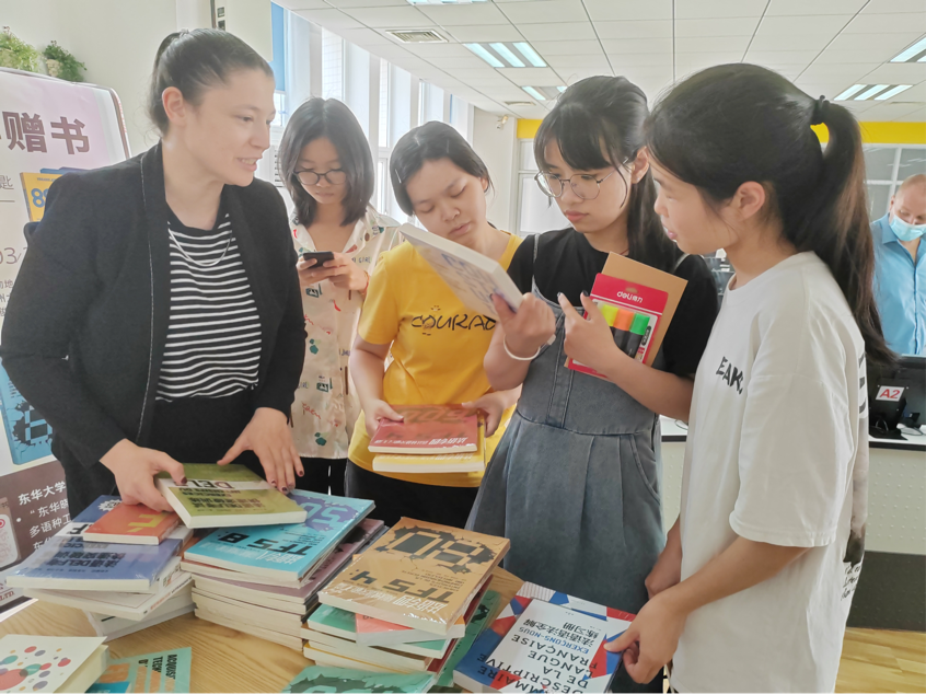 陈潇老师首先表达了对东华大学出版社的感谢,介绍了此次展出的各类法语图书。之后,老师与同学们一起上台品悦图书,分享心得。此次师生共读加强了师生情谊,提高了学生们的阅读兴趣,营造了浓厚的法语文化氛围。