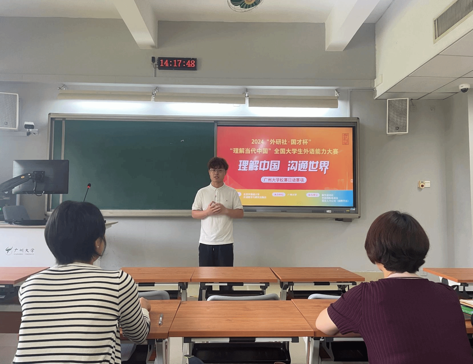 校赛分为两个环节:笔试和口试。笔试部分涵盖了阅读理解、汉译日翻译及写作。口试部分则包括定题演讲和即兴问答,每位选手围绕题目进行4分钟的演讲,演讲结束后需要现场回答评委的提问。