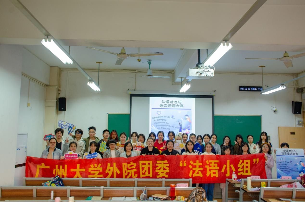 西语系法语专业24级学生在桂花岗校区5号楼南408成功举办语音语调大赛。法语系邹琰主任、陈潇副主任、法语教师李悦、冯雪飞老师,以及外教Anne-Flore出席并担任评委。