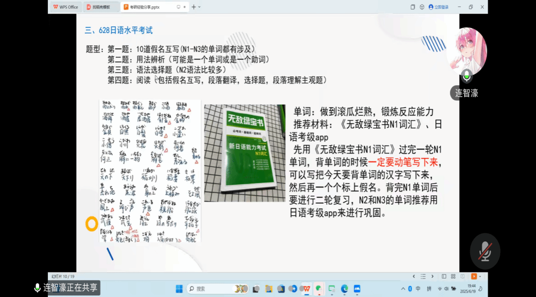 连智濠同学成功考入广东外语外贸大学日语语言文学专业日语教育学方向。他在分享中着重介绍了广外该方向的考研招生政策、考试科目侧重点以及备考策略等,并推荐了《无敌绿宝书 N1 词汇》、日语考级 app 等高效学习工具,助力同学们提升学习效率。