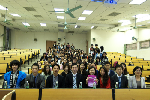 日语系主办,特邀福冈市总务企画局国际部的国际交流负责人高桥清贵先生、广东摩斯贝格餐饮管理有限公司运营总监水野隆之先生、保圣那人才服务(上海)有限公司广州分公司业务开发主管山内奖先生等共6位来宾进行了精彩的演讲。日语系师生参加并认真听取了讲座。