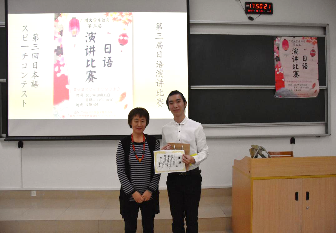 来自日语161班的熊威同学获得了低年级组的一等奖。
