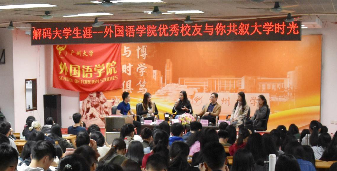 自2015年以来精心打造的学生思想政治工作品牌项目,旨在加强辅导员与学生的交流,助力学生成长成才。截至目前,该活动由学院辅导员主持,已成功举办6期,例如“老逄说事之西藏骑行经历”、“世界那么大,外院辅导员带你去看看”、“青春不迷茫”等主题活动。本期活动从B10栋“五室一站”走到图书馆讲学厅,辅导员特邀了优秀校友一同与近三百名在校生展开交流,在形式、规模上都有一定的创新和突破。