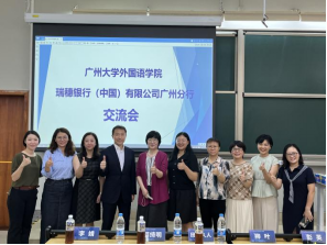 副院长彭念凡致辞,学工办柳叶老师及东语系师生出席了本次交流会。2023届日语专业毕业生杨可欣及苏敏怡作为刚刚入职瑞穗广州公司的新成员也参加了本次交流会。