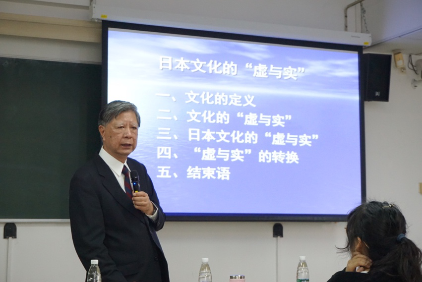 讲座基于比较文化学的视角,以中日两国的文化为例,围绕“文化”这一概念的内涵、文化的“虚拟”与“现实”及其转换展开。林教授引用各国文化学学者的文献对“文化”的内涵进行了详实的论证,从比较文化学的角度强调文化对人类适应社会并习得社会化能力与习惯的重要性。在文化的虚与实的关系上,从经济、政治、国际交流、中外文学艺术等多领域、多角度地进行阐述。譬如,“客套话”与“心里话”等语言中包含的虚实关系、“草船借箭”以及“道是无晴却有晴”等中国经典作品中体现的从“无”到“有”的思维转换等。围绕虚与实的转换,林教授通过列举日本民歌的情感传递、“神马”的延续等多个案例,深入地呈现了虚与实的转换场景,并预测了文化中的虚与实的转换的未来发展趋势。